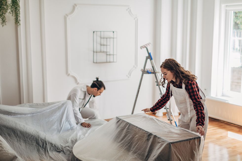 Brabhams recomienda preparar un área de trabajo fuera de la cocina, como un garaje o un sótano, con buena ventilación e incluso algunos ventiladores. Allí, colocará plástico y colocará de tres a cuatro caballetes con dos por cuatro en la parte superior para sostener las puertas del gabinete. También puede instalar una estación de pintura cercana, completa con pintura, rodillos, brochas, baldes y papel de lija.